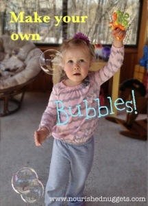 My kids would play with bubbles ALL DAY if they could, but the bubble solutions tends to run out fast. In a pinch I made up my own batch and it worked great! Make your own bubbles!